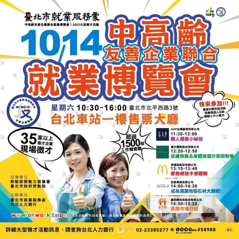 10月14日(六)10:30~16:00在北車1樓售票大廳